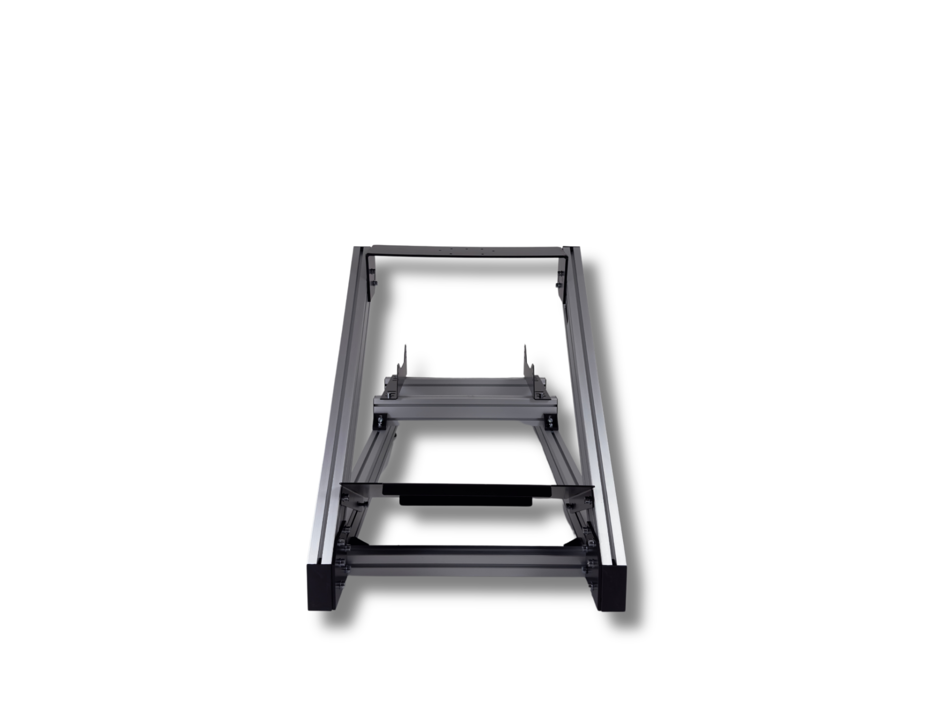 Postazione base con supporto pedaliera regolabile in inclinazione e supporto volante regolabile in altezza/profondità e inclinazione.