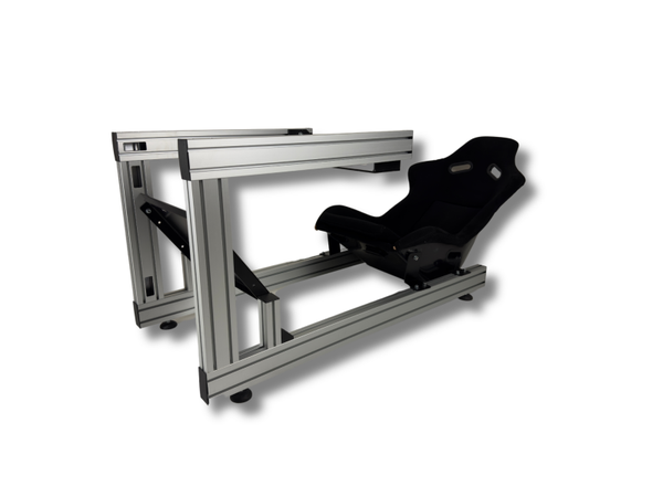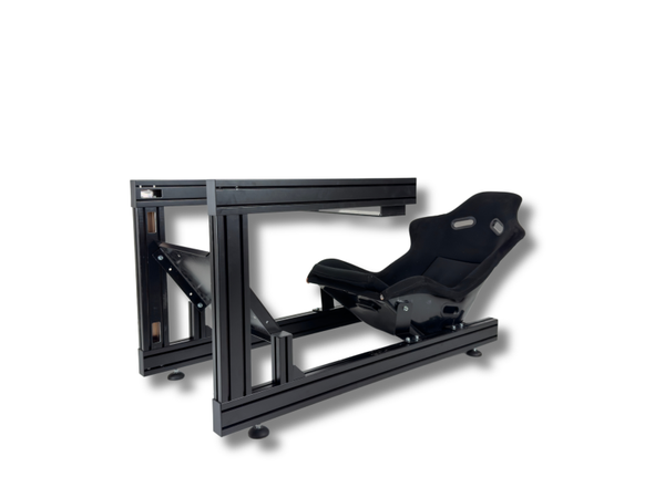Postazione Formula con supporto pedaliera regolabile in inclinazione e supporto volante regolabile in altezza/profondità e inclinazione.
